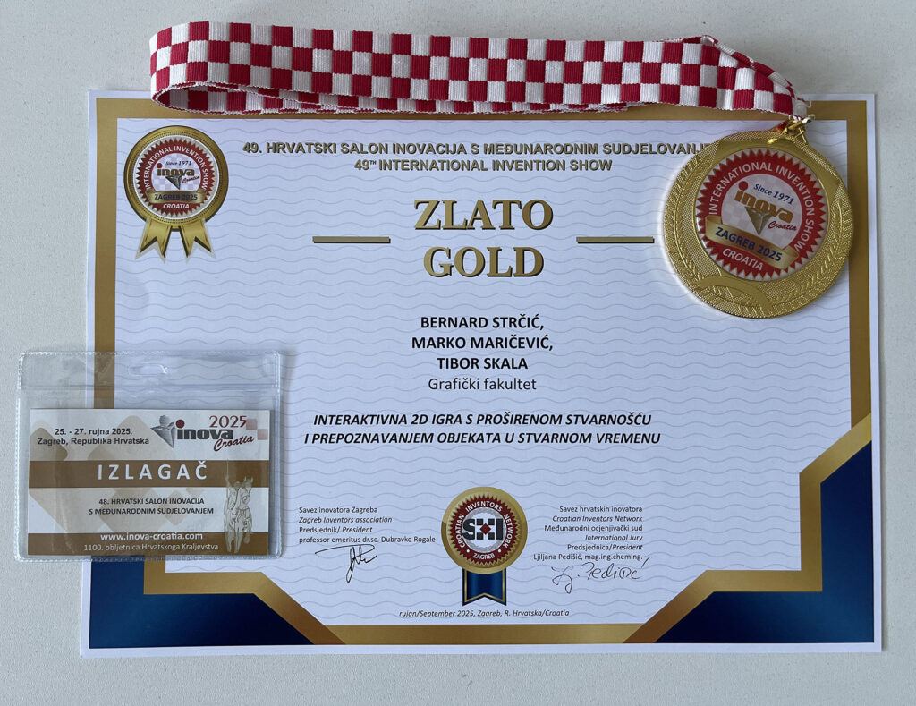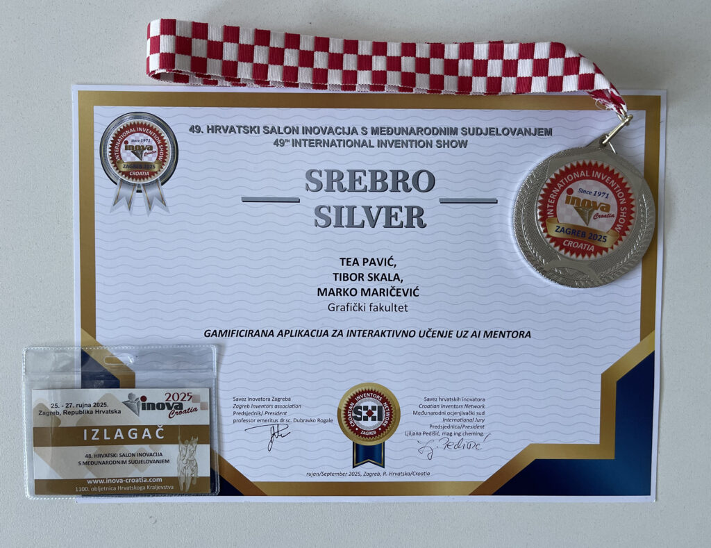 Na 49. hrvatskom salonu inovacija s međunarodnim sudjelovanjem INOVA 2025, održanom od 25. do 27. rujna na Zagrebačkom velesajmu, studenti Grafičkog fakulteta ostvarili su značajan uspjeh.